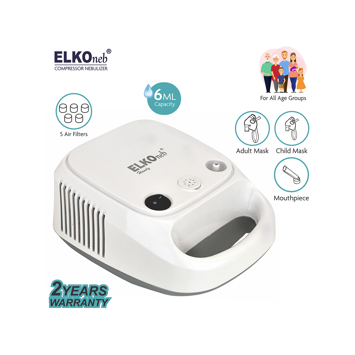 ELKO is one of the oldest manufacturers of medical equipments in India since 1965. ELKOneb Handy provides aerosol medication therapy for effective treatment of bronchial asthma, Acute Bronchitis, Respiratory Infection and other Respiratory infections. Handy has an innovative design, simple operation and it is easy to carry. Compressed air from the nebulizer flows into the medicine cup to form a strong fog, escalating the tiny mist particles into the affected area through air channel. This product has an efficient oil-free piston pump, requires no routine lubrication and can be used continuously for a longer period.
